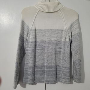 Karen Scott Women's Size LP Long Sleeve Sweater Cream & Gray