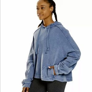 Free People Movement Sweatshirt Pullover Criss Cross Hoodie Oversize Blue