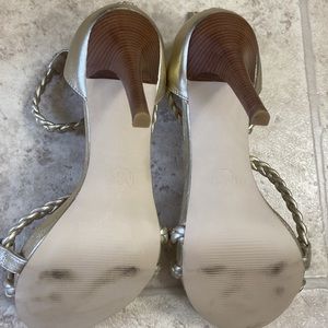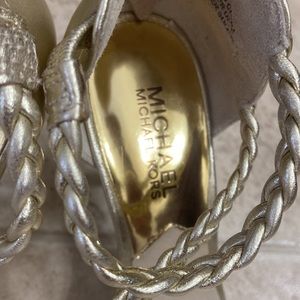 Barely used Michael Kors sandals. Approximately 3.5 inches heels. No original box. Gold color.