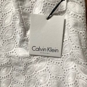 New with tags, beautiful white eyelet sleeveless dress from Calvin Klein.