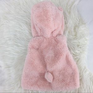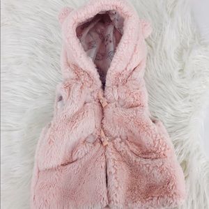 Baby Girl Pink Sherpa Bear Ear Vest Toggle Close