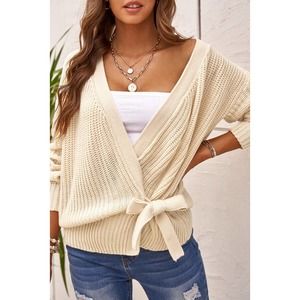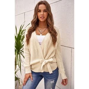 Stay cozy and stylish in our Wrap V Neck Sweater With Side Tie. Crafted from soft and luxurious fabrics, this wrap sweater features a flattering v-neckline and cute side tie. The perfect combination of comfort and chic all in one piece! What more could you ask for?
