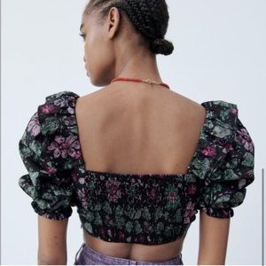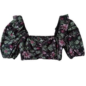 Zara Floral Ruffle Puff Sleeve Crop Top M