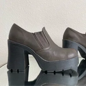 LOWER EAST SIDE Vintage Y2K Brown Faux Leather Chunky Platform Heeled Ankle Boot