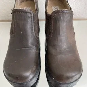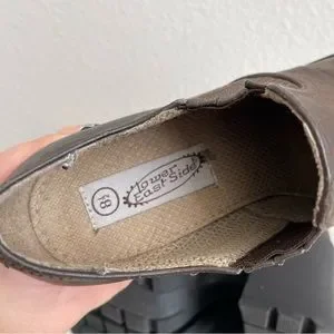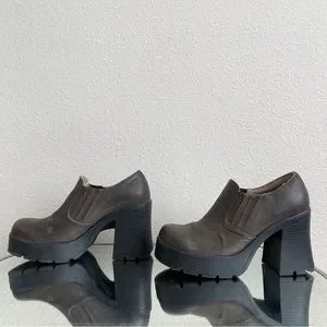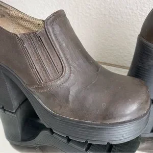 Vintage brown faux leather chunky platform heeled shoes by Lower East Side.