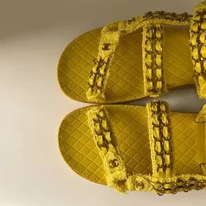 SOLD ❌ New 🌟 Rare Chanel CC Tweed Chain Yellow Sandals Size 39
