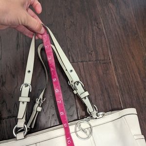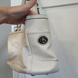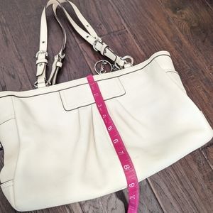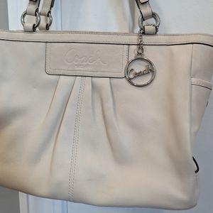 COACH East West Gallery Pleated Cream Leather Shoulder Tote Handbag