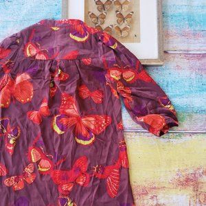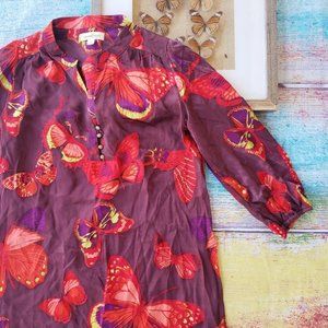 Amour Vert Red Dalila Silk Butterfly Print Tunic Shift Mini Dress M