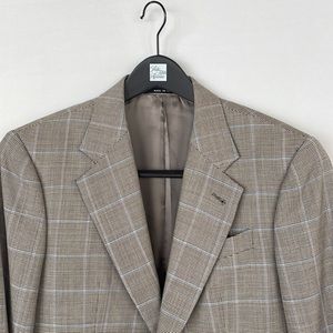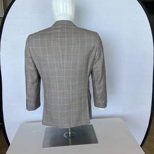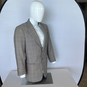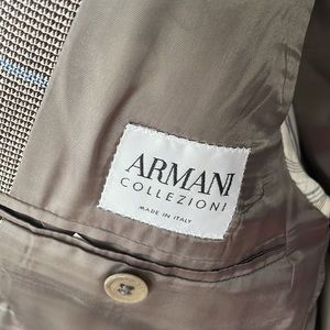 Armani Mens Sport Jacket… Gray/Blue …38 Short…3 Pockets outside… 2 Pockets Inside…Double Vent in Back…100% Wool… Lining 100% Rayon…21 1/2’ laying flat pit to pit… 32’ Length …22 5/8’ Arm Length