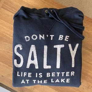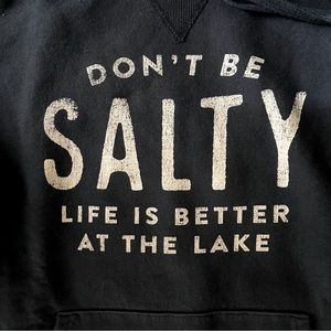 I purchased the hoodie brand new and added the Direct To Garment (DTG) graphic print design to the front side, “Don’t Be Salty, Life Is Better At The Lake”.
