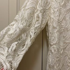 Adrianna Papell White Lace, Sheer 3/4 length sleeve, White underlay, Size L