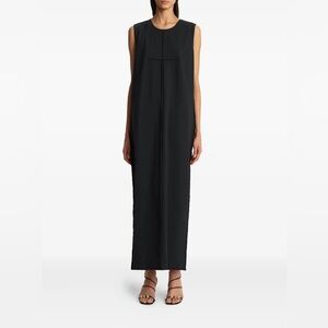 An update on the cozy sweatshirt dress, the polished turtle neck style is cut in soft cotton and designed with a loose bodice and fitted skirt. The dress is finished with fitted ribbed cuffs, asymmetrical bands at the hem and gold-tone buttons on the side.