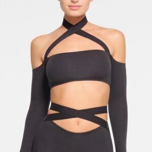 Fabletics Black Blare Cross Back Medium Impact Sports Bra