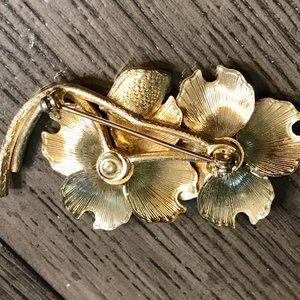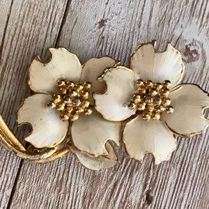 Vintage DOUBLE DOGWOOD White & Gold Tone Enamel Brooch/Pin
