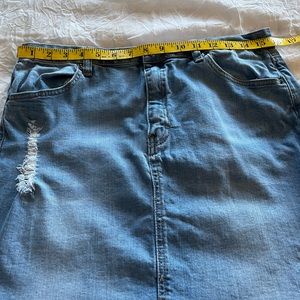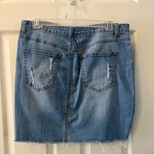 Wax Jeans Los Angeles Distressed Shred Denim Mini Skirt. Two front and back pockets
