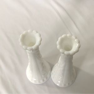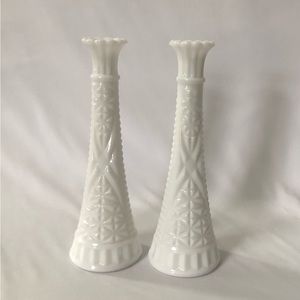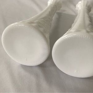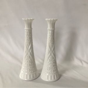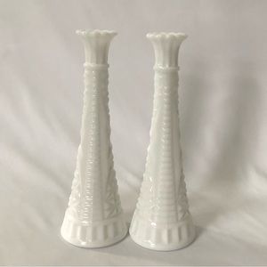 Vintage Farmhouse White Milk Glass Tall Bud Vases 9” - Set of 2
