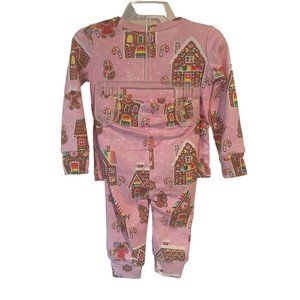 The Childrens Place Girls 2 Piece Pajamas Pink Gingerbread Christmas 3-6 mo.
