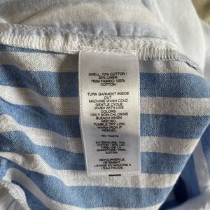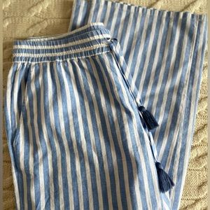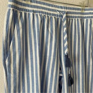 NWT Stripe Weekend pull-on pants with elastic band and 4 pockets. Full length. Breaker blue/white stripe. Size L. The pants seem to be a bit short for my mom, who is 5'7" tall. Please check measurements: