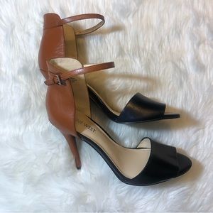 Nine West Acre Leather Black/Brown Heels 7.5M