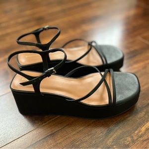 The cutest Y2K/90’s inspired Reformation flatform sandals 👡 ✨ 100% genuine leather. Flatform heel, square toe, high heel height, ankle security. I so wish I could keep these!