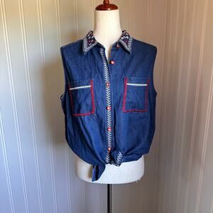 This 70s/80s Norleander Cardigan sweater is a size XL. It’s blue and yellow with a fair isle pattern. It has silver toned buttons and pockets on the front. It was made in Norway and is 100% wool. Its a beautiful piece with cottagecore vibes and is in good vintage condition.