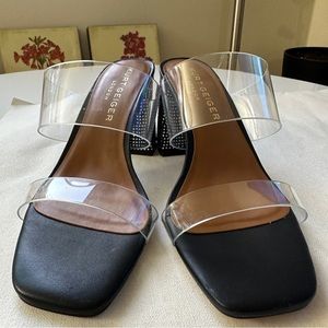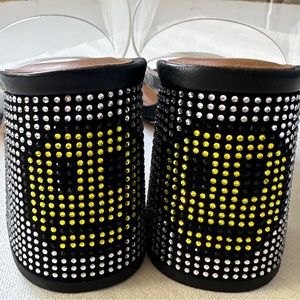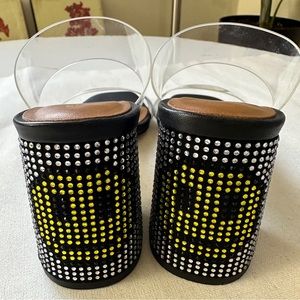 (NWOT) Kurt Geiger Party Clear Embellished Smiley Face Block Heel Sandals 6.5