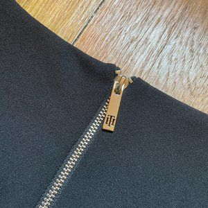 Tommy Hilfiger solid black, cold shoulder feminine silhouette dress. Beautiful and protective zipper closure on the back of the dress adds a sexy edge to this business professional or special event look. This dress will nicely highlight any and all curves!