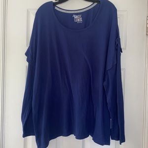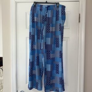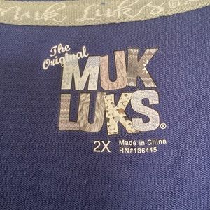 Muk Luks pajama set in wonderful condition - only worn a few times. Long pants with elastic tie waist. Long sleeve jewel neck top with ruffle on each arm. Size 2X.