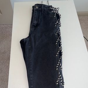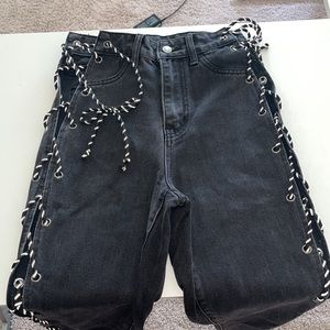Reflective tie up side jeans. Never worn ✔️super stylish make offers
