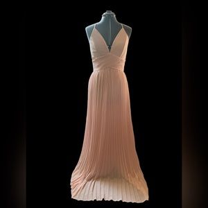 Simple peach peignoir set, robe sheer, double layered, nightgown, double layered as well. soft peach( did not photograph well). est age 1969-1970, based on who i purchased it from.