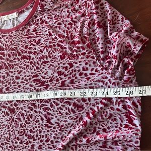 Teddy velvet burnout t-shirt in maroon red and rose colors… this tee runs big, please note measurements below.