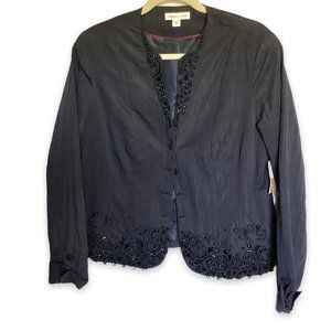 New With Tags Coldwater Creek black bead embellished peplum jacket size 14.
