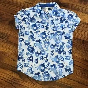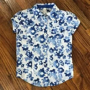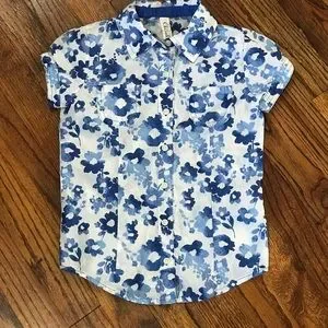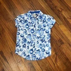 Cherokee Blue Flower Floral Print Blouse Size Small 6 / 7 Hawaiian Button Down