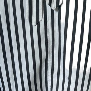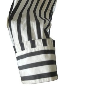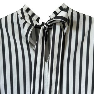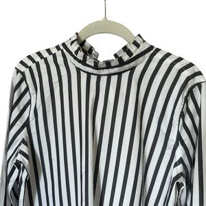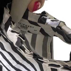 Equipment Striped High Ruffle Collar Long Sleeve Top Navy White Size Small