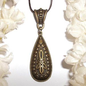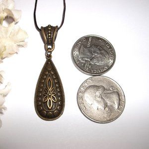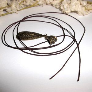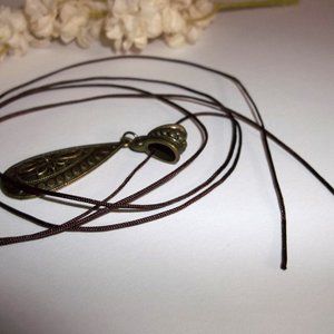 Necklace Pendant Charm Medallion Tie Cord Adjustable Length Bronze Brown C010