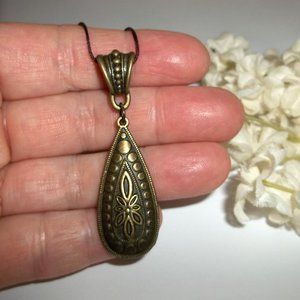 This gorgeous beaded bohemian style necklace set is sure to get you lots of compliments. Brand new and handmade by me - wvluckygirl. Handcrafted with a very detailed rustic antiqued brown bronze toned teardrop costume jewelry charm. The charm and bail measure 2 inches tall & 5/8 inch wide. Comes with a 36 inch brown nylon rope cord string. It is adjustable in that you can tie it to any length you want to wear it. 10 12 14 16 18 20 22 24 26 28 30 32 34 36 inches. Tie it once to make a long stacking necklace. Double it up around your neck to make a short choker. You could even add the pendant to a chain necklace you already own to change up your look. Buy it now before someone else does!