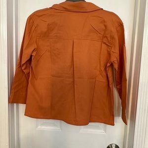 NWT PetalLush Sz M 3/4 sleeve button up shirt front pockets pumpkin colored 100% cotton perfect for Fall🍁