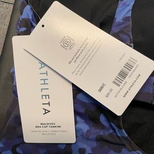 Athleta Women's Maldives Bra Cup Tankini Swim Top in Blue Camo Print - 36 B/C