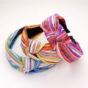 65. Blue Brown Sriped Metallic Knot Burnout Headband