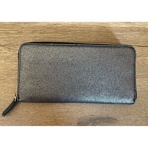 $65 Fossil Jayda Zip Clutch Wallet Grey Black Gunmetal Metallic