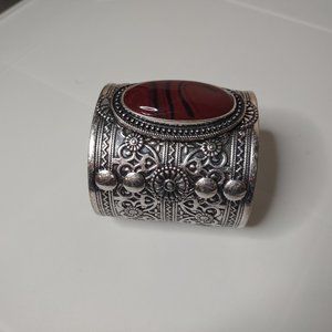 6.5 Inch Silver Tone And Dark Red Cuff Bracelet. Check Out My Closet For Other Great Items!!! Thank You For Considering Making A Purchase.