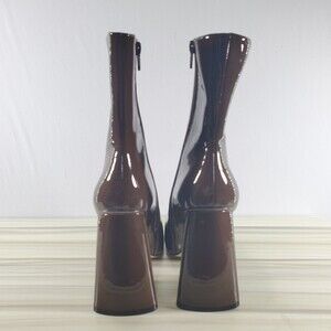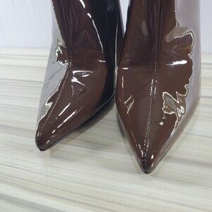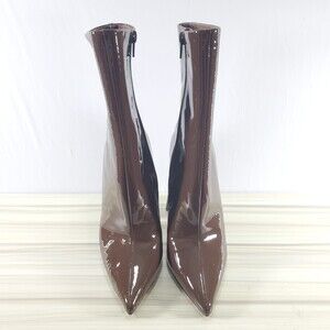 6.5 Raye Cleopatra Brown Patent Leather 4.5" Chunky Heel Pointed Toe Ankle Boot