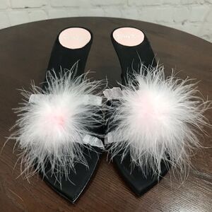 6.5 Sylvie Rose super sexy and seductive Sateen & Feather open toe Mules