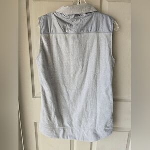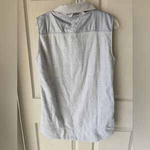 This $65 Under Armour Vest is designed for women in a size small and features a gray color with a solid pattern. It has a mid-length and loose fit, making it suitable for outdoor activities in winter, fall, or spring. The vest is made of polyester outer shell and fleece fabric, with a polyester lining for comfort. It includes a full zip closure, pockets for convenience, and a subtle logo accent, making it a lightweight and practical choice for travel or casual wear.