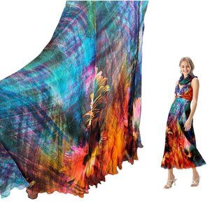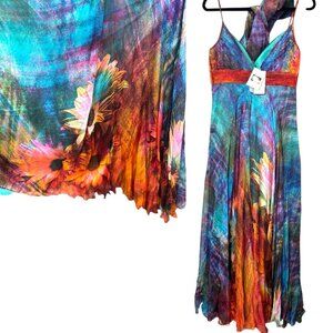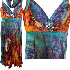 $650 ALBERTO MAKALI WATERCOLOR 100% SILK FORMAL MAXI JEWELED DRESS GOWN NWT