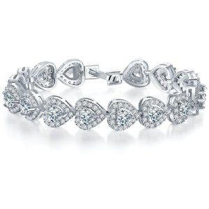 6.50 Ct 4mm Heart Shape with Round Shape Side Diamond Prong Set Simulated Diamond Bracelet in 925 Sterling Silver. There are total 270 diamonds in these Bracelet, Diamond weight is 6.50 Carats in total, Color of white diamond is G-H and having Clarity VVS1. Metal weight is 18.00 gram for this bracelet. This diamond Bracelet will catch the light as you walk and glimmer with beauty. All the diamonds are of the finest quality to perfection. This Bracelet comes with complementary beautiful gift box.