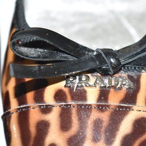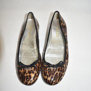 $650 PRADA LEOPARD LOGO Patent Cap-Toe Bow Ballerina Flat BALLET SHOES 36 (D20)