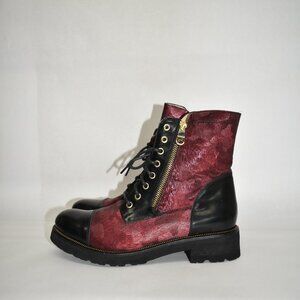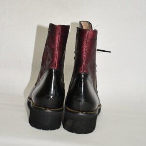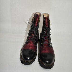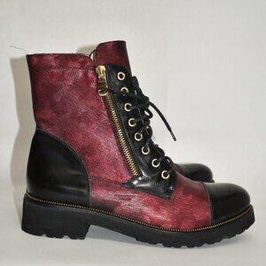 $650 RON WHITE Tiffany Combat Boot LACE UP BURGUNDY BLACK LEATHER 39 (TPO19.5)