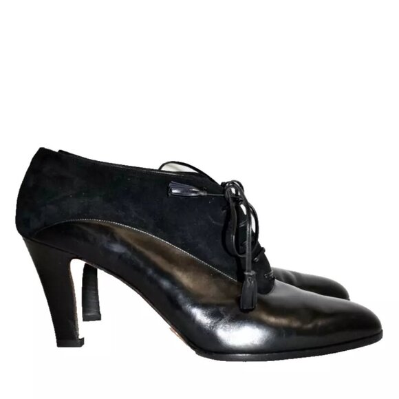 $650 SALVATORE FERRAGAMO SUEDE LEATHER LACE UP BOOTIE HEEL BLACK 11 B (SE38)