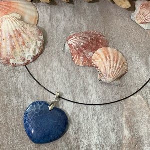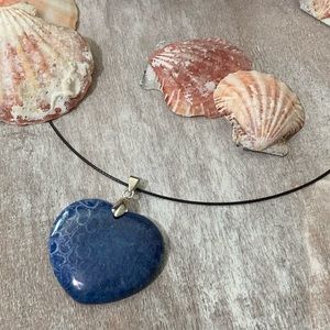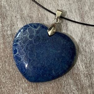 This is a Beautiful Blue Chrysanthemum Coral Fossil Heart Shaped Pendant